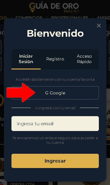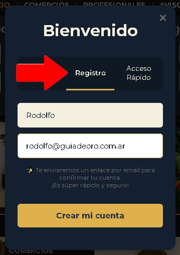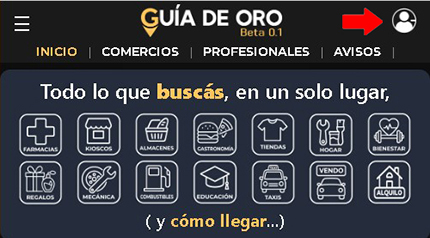 Buscá el ícono de login en la página principal y hacé click para comenzar tu registro.