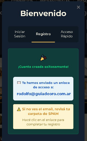 Revisá tu email (bandeja de entrada y SPAM) y hacé click en el enlace de confirmación para activar tu cuenta.